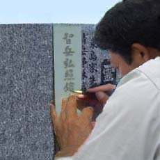 ■4、文字彫り 弊社の出張追加彫りの場合、石碑を工場まで運搬する費用が掛からないのは勿論、文字を彫る箇所に作業できるスペースがあれば、